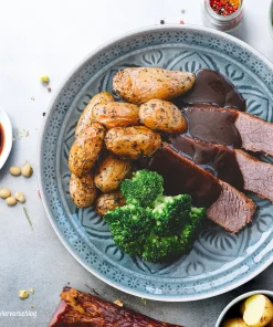 Beste, zarte Rinderbrust mit leckeren Kartoffeln. Dieses Gericht zeichnet sich durch seinen hohen Proteinanteil aus. Abgerundet wird es durch die vielen Vitamine im Brokkoli. Es ist der gesunde Mix aus Fleisch und Gemüse, spendet Kraft, Energie und sorgt dank der Kartoffeln für ein langes Sättigungsgefühl.