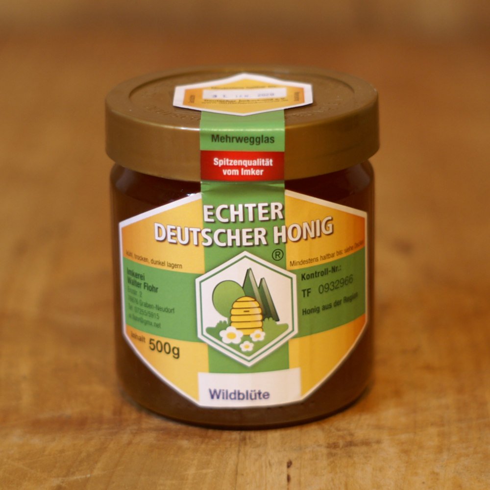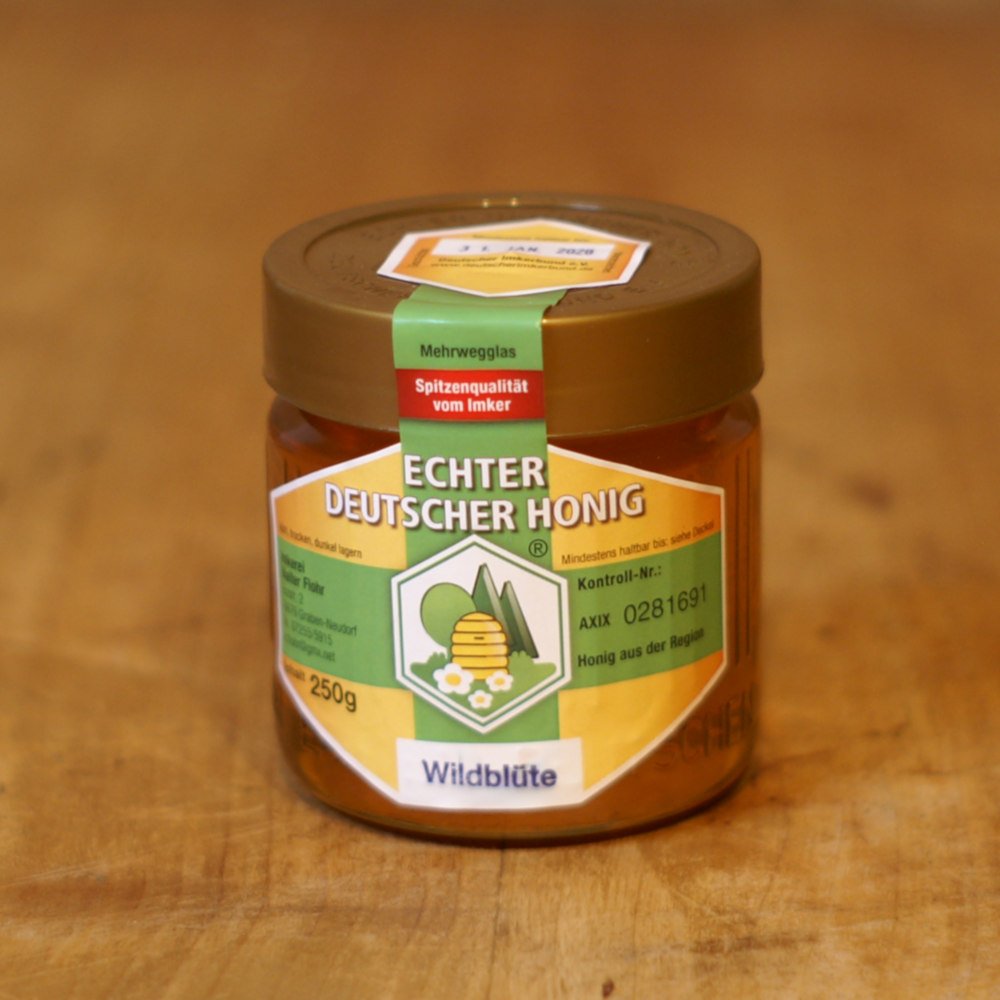 Unser Wildblütenhonig stammt aus der Region von der Imkerei Walter Flohr.