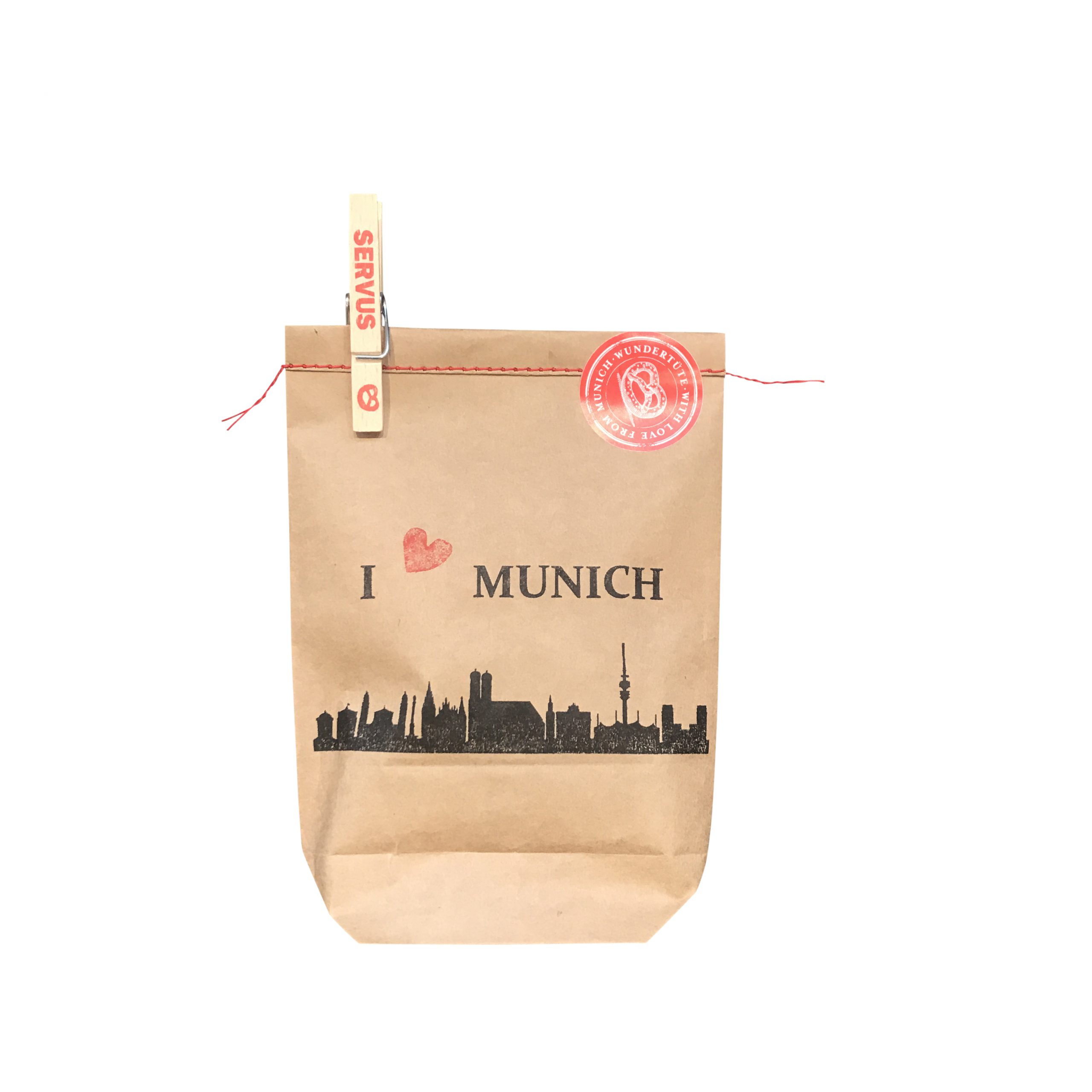 Wundertüte München mit toller Bestückung wie zum Beispiel München Button, Kühlschrankmagneten, Postkarte, Herzbonbon, Bierdeckel und Glubberl – der Inhalt der Wundertüte kann variieren, sie enthält aber immer tolle Münchner Herzlichkeiten! Mit roter Naht zugenäht und mit Aufkleber versehen, da hast ein super uniques Mitbringsl aus München! Mei is des schee!