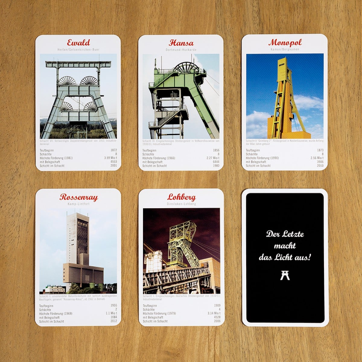 Die Riesen des Reviers im handlichen Spielkartenformat! 32 ehemalige Zechen des Ruhrgebiets zeigen uns die Schönheit der Industriekultur vergangener Tage. Beim Spiel um den frühesten Spatenstich, die meiste Kohle und die letzte Schicht kann es nur einen Sieger geben. Für alle Anderen ist leider „Schicht im Schacht“.