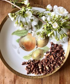 Zutaten: Apfelstücke (61%), Cassiarinde (15%), Hibiskus, kandierte Papayastücke (Papaya, Zucker), rote Rosenblütenblätter, Aroma, GEHOBELTE MANDELN, natürliches Aroma.