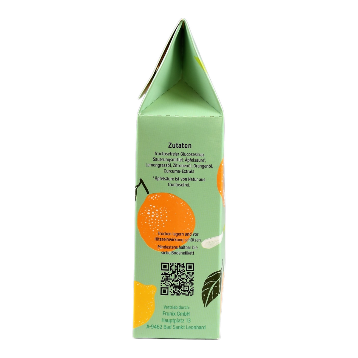 Fructosefreier Glucosesirup, Säuerungsmittel: Äpfelsäure *, Zitronenöl, Orangenöl, Curcuma-Extrakt