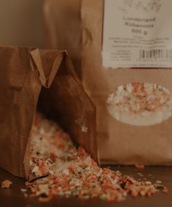 Füttern Sie nur frisch zubereitete Flocken. Vorgeweichtes Getreide kann – insbesondere im Sommer – nach einigen Stunden sauer und so für Hund und Katze unverträglich werden.