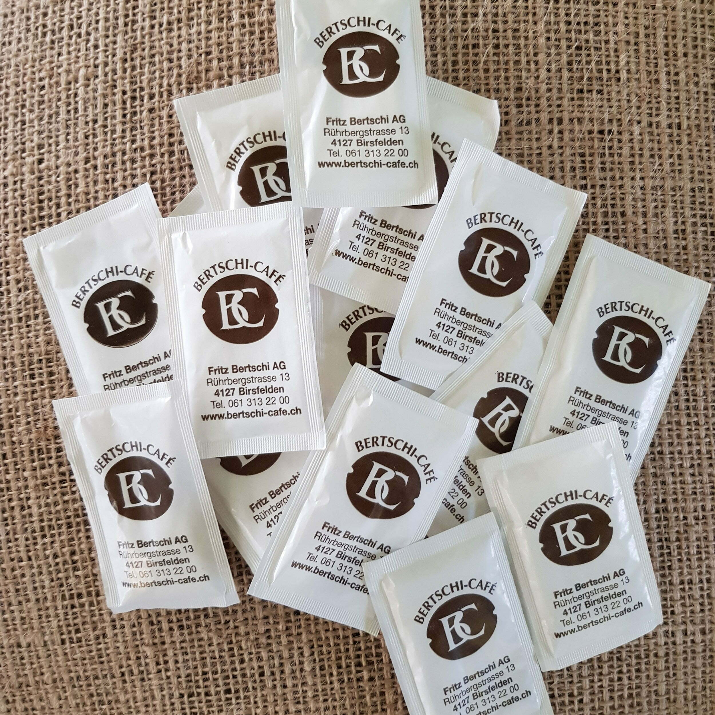 Zuckerbeutel mit Bertschi Logo Aufdruck à 4gr.